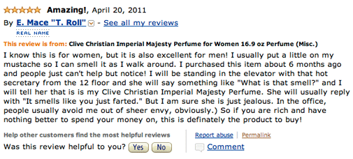 Apparently, it’s pretty common practice for super expensive products to write silly reviews. Go figure 🙂
